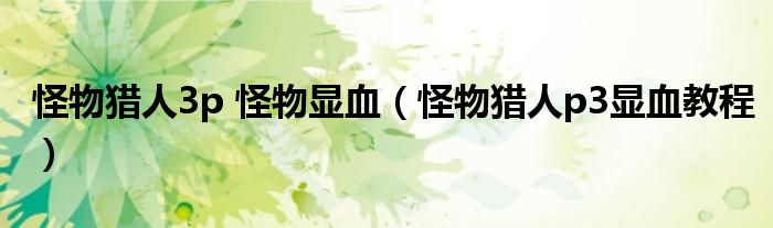 关于怪物猎人3p 怪物显血,怪物猎人p3显血教程这个很多人还不知道,今天菲菲来为大家解答以上的问题,现在让我们一起来看看吧!