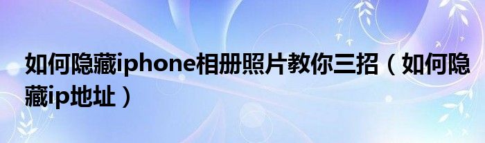 如何隐藏iphone相册照片教你三招(如何隐藏ip地址)