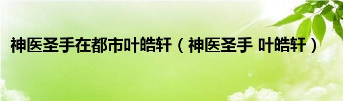 大家好,小晋来为大家解答以下问题,关于神医圣手在都市叶皓轩,神医圣手 叶皓轩很多人还不知道,今天让我们一起来看看吧!