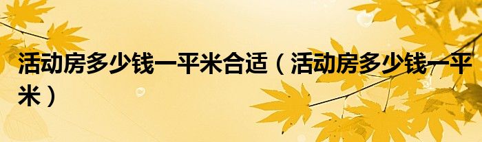 活动房多少钱一平米合适(活动房多少钱一平米)