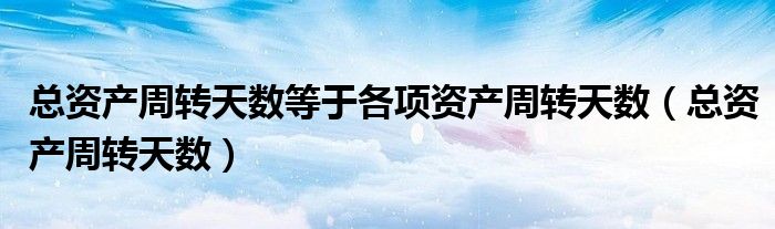 关于总资产周转天数等于各项资产周转天数,总资产周转天数这个很多人还不知道,今天菲菲来为大家解答以上的问题,现在让我们一起来看看吧!