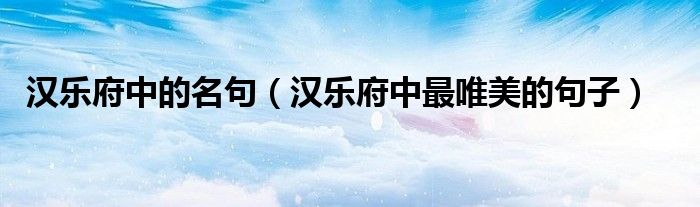 汉乐府中的名句(汉乐府中最唯美的句子)