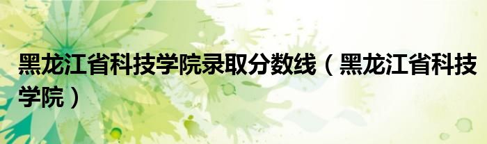 黑龙江省科技学院录取分数线,黑龙江省科技学院这个很多人还不知道,小飞来为大家解答以上的问题。现在让我们一起来看看吧!