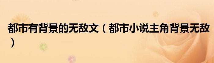 大家好,小晋来为大家解答以下问题,关于都市有背景的无敌文,都市小说主角背景无敌很多人还不知道,今天让我们一起来看看吧!