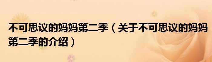 大家好,今天小乐来为大家解答以上的问题。不可思议的妈妈第二季,关于不可思议的妈妈第二季的介绍很多人还不知道,现在让我们一起来看看吧!
