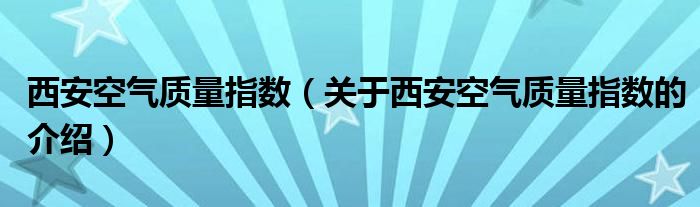 西安空气质量指数(关于西安空气质量指数的介绍)