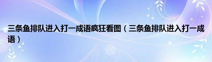 大家好,小晋来为大家解答以下问题,关于三条鱼排队进入打一成语疯狂看图,三条鱼排队进入打一成语很多人还不知道,今天让我们一起来看看吧!