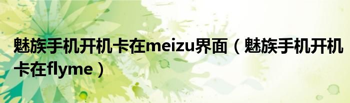 魅族手机开机卡在meizu界面(魅族手机开机卡在flyme)
