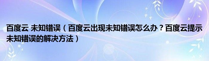 百度云 未知错误(百度云出现未知错误怎么办?百度云提示未知错误的解决方法)