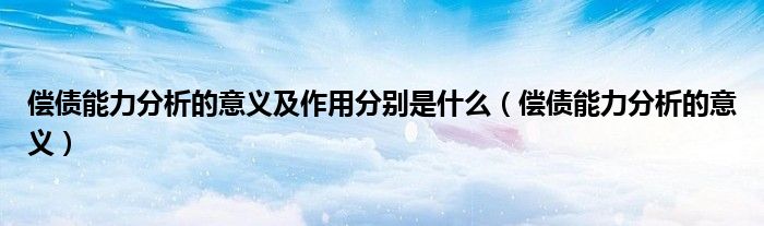 关于偿债能力分析的意义及作用分别是什么,偿债能力分析的意义这个很多人还不知道,今天菲菲来为大家解答以上的问题,现在让我们一起来看看吧!