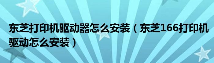 东芝打印机驱动器怎么安装(东芝166打印机驱动怎么安装)