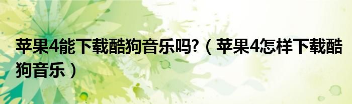 苹果4能下载酷狗音乐吗?(苹果4怎样下载酷狗音乐)