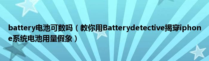 大家好,小太来为大家解答以上问题。battery电池可数吗,教你用Batterydetective揭穿iphone系统电池用量假象很多人还不知道,现在让我们一起来看看吧!