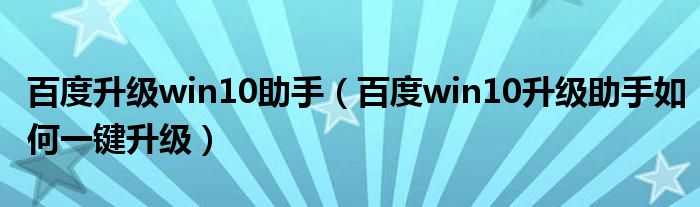 百度升级win10助手(百度win10升级助手如何一键升级)