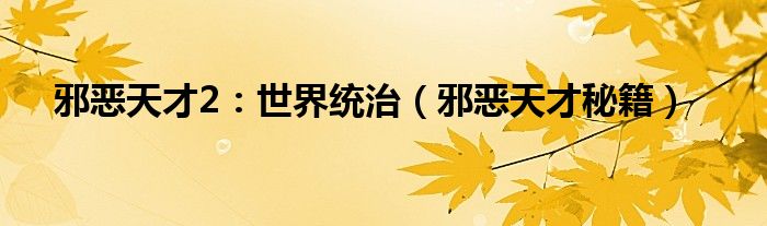 大家好,雨雨来为大家解答以上问题,邪恶天才2:世界统治,邪恶天才秘籍很多人还不知道,现在让我们一起来看看吧!