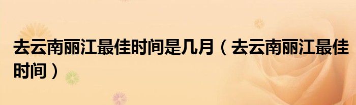 关于去云南丽江最佳时间是几月,去云南丽江最佳时间这个很多人还不知道,今天菲菲来为大家解答以上的问题,现在让我们一起来看看吧!