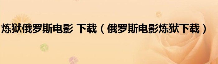 关于炼狱俄罗斯电影 下载,俄罗斯电影炼狱下载这个很多人还不知道,今天菲菲来为大家解答以上的问题,现在让我们一起来看看吧!