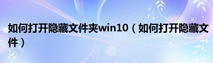 大家好,雨雨来为大家解答以上问题,如何打开隐藏文件夹win10,如何打开隐藏文件很多人还不知道,现在让我们一起来看看吧!