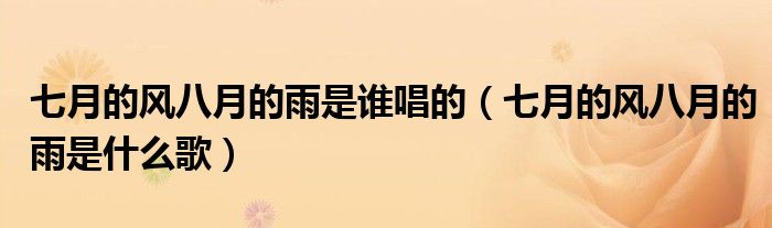 大家好,雨雨来为大家解答以上问题,七月的风八月的雨是谁唱的,七月的风八月的雨是什么歌很多人还不知道,现在让我们一起来看看吧!