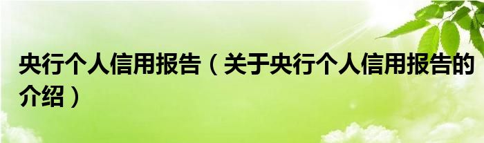 央行个人信用报告(关于央行个人信用报告的介绍)