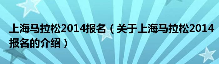上海马拉松2014报名(关于上海马拉松2014报名的介绍)