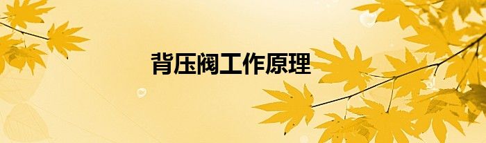 背压阀工作原理