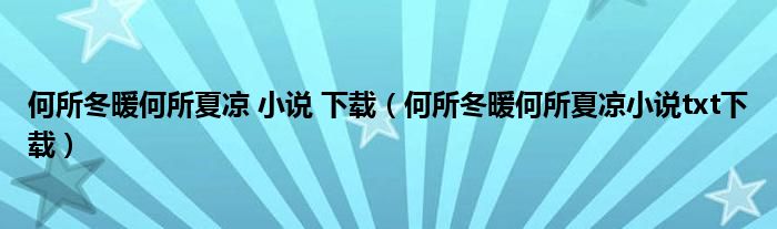 何所冬暖何所夏凉 小说 下载(何所冬暖何所夏凉小说txt下载)
