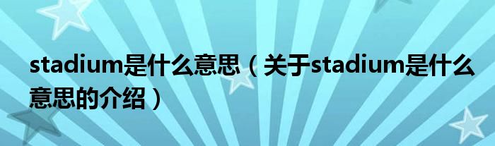stadium是什么意思(关于stadium是什么意思的介绍)