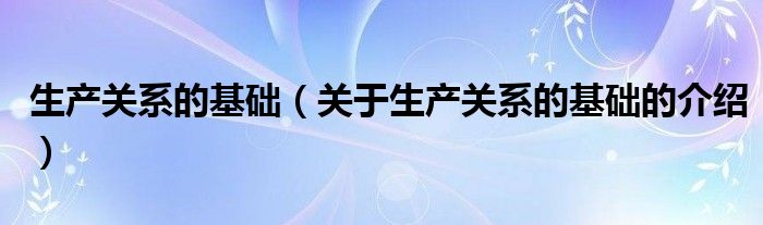 大家好,小都来为大家解答以上的问题。生产关系的基础,关于生产关系的基础的介绍很多人还不知道,现在让我们一起来看看吧!