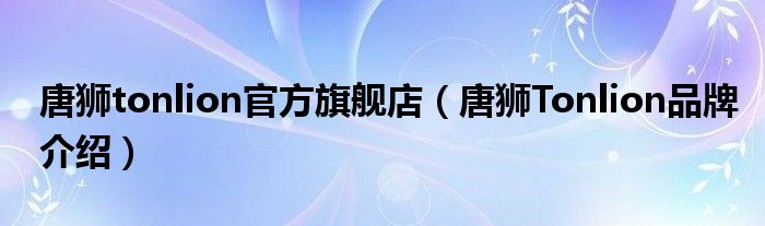 大家好,小源来为大家解答以上问题。唐狮tonlion官方旗舰店,唐狮Tonlion品牌介绍很多人还不知道,现在让我们一起来看看吧!