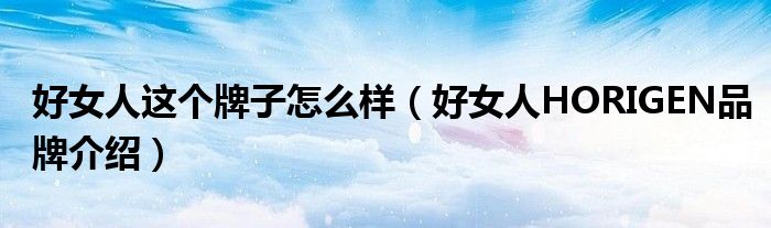 好女人这个牌子怎么样(好女人HORIGEN品牌介绍)