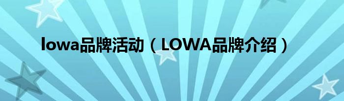 大家好,小源来为大家解答以上问题。lowa品牌活动,LOWA品牌介绍很多人还不知道,现在让我们一起来看看吧!
