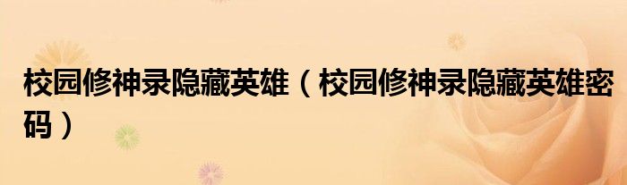 校园修神录隐藏英雄,校园修神录隐藏英雄密码很多人还不知道,乐乐来为大家解答以上问题,现在让我们一起来看看吧!