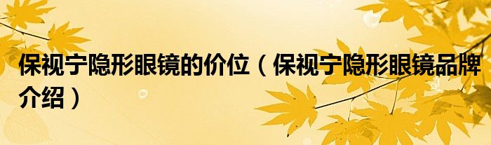 大家好,小源来为大家解答以上问题。保视宁隐形眼镜的价位,保视宁隐形眼镜品牌介绍很多人还不知道,现在让我们一起来看看吧!