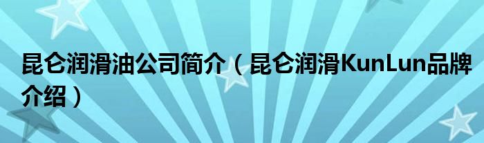 昆仑润滑油公司简介(昆仑润滑KunLun品牌介绍)