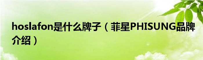 大家好,小源来为大家解答以上问题。hoslafon是什么牌子,菲星PHISUNG品牌介绍很多人还不知道,现在让我们一起来看看吧!