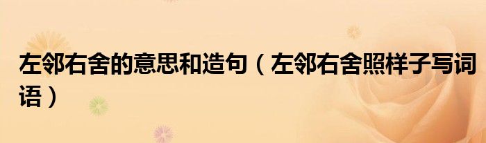 大家好,小晋来为大家解答以下问题,关于左邻右舍的意思和造句,左邻右舍照样子写词语很多人还不知道,今天让我们一起来看看吧!