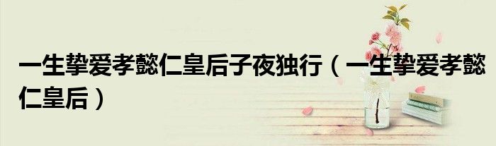 一生挚爱孝懿仁皇后子夜独行(一生挚爱孝懿仁皇后)