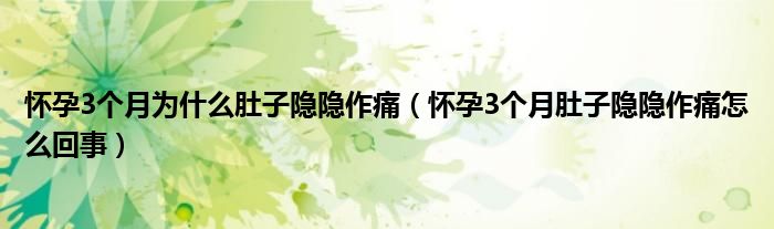 大家好,linda来为大家解答以上的问题。怀孕3个月为什么肚子隐隐作痛,怀孕3个月肚子隐隐作痛怎么回事很多人还不知道,现在让我们一起来看看吧!