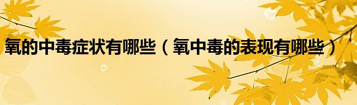 大家好,linda来为大家解答以上的问题。氧的中毒症状有哪些,氧中毒的表现有哪些很多人还不知道,现在让我们一起来看看吧!