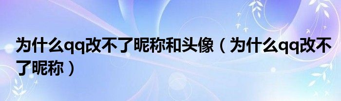 为什么qq改不了昵称和头像(为什么qq改不了昵称)