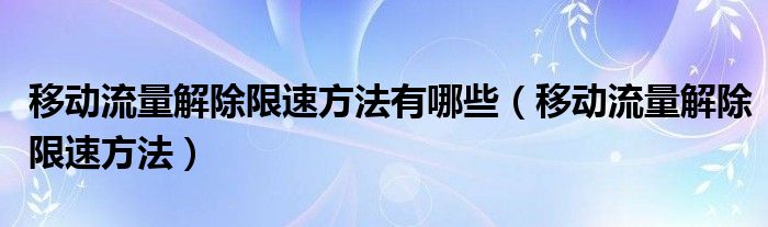 大家好,小晋来为大家解答以下问题,关于移动流量解除限速方法有哪些,移动流量解除限速方法很多人还不知道,今天让我们一起来看看吧!