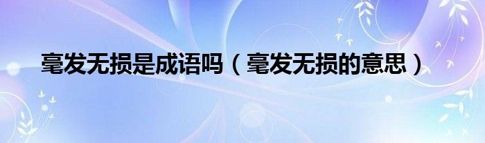 大家好,小晋来为大家解答以下问题,关于毫发无损是成语吗,毫发无损的意思很多人还不知道,今天让我们一起来看看吧!