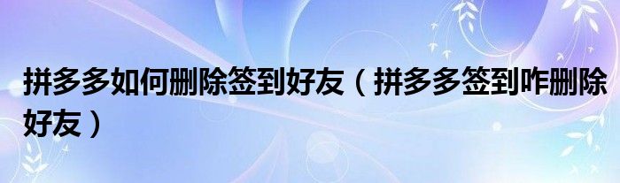 大家好,小晋来为大家解答以下问题,关于拼多多如何删除签到好友,拼多多签到咋删除好友很多人还不知道,今天让我们一起来看看吧!