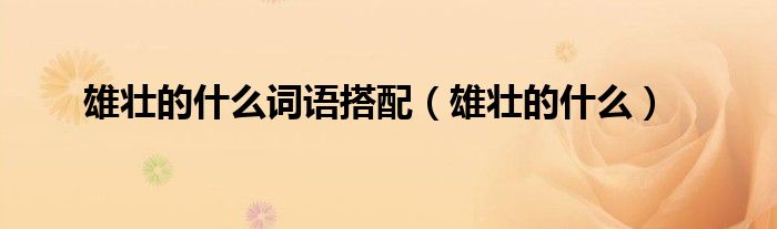 大家好,小晋来为大家解答以下问题,关于雄壮的什么词语搭配,雄壮的什么很多人还不知道,今天让我们一起来看看吧!