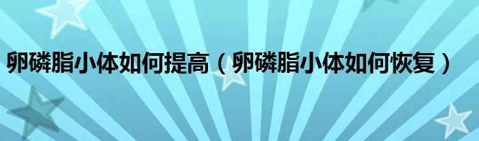 大家好,linda来为大家解答以上的问题。卵磷脂小体如何提高,卵磷脂小体如何恢复很多人还不知道,现在让我们一起来看看吧!