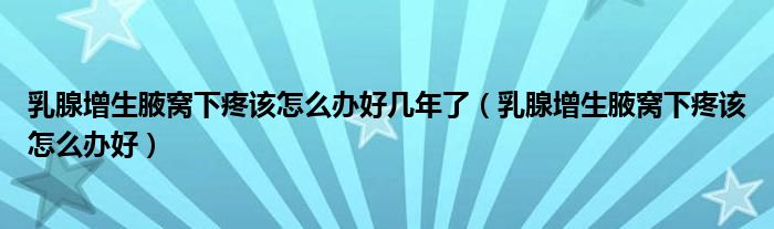 大家好,linda来为大家解答以上的问题。乳腺增生腋窝下疼该怎么办好几年了,乳腺增生腋窝下疼该怎么办好很多人还不知道,现在让我们一起来看看吧!