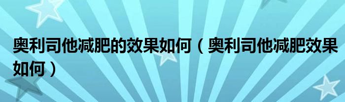 奥利司他减肥的效果如何(奥利司他减肥效果如何)