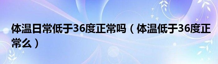 大家好,linda来为大家解答以上的问题。体温日常低于36度正常吗,体温低于36度正常么很多人还不知道,现在让我们一起来看看吧!
