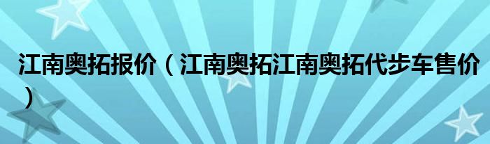 江南奥拓报价(江南奥拓江南奥拓代步车售价)